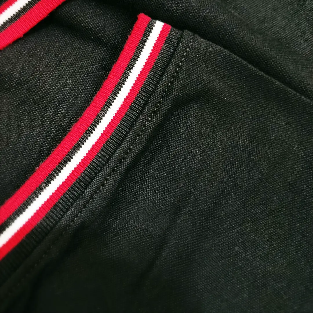 Vibrant Tri-Tipping: Exquisite Red and White tipping on the collar and sleeve ribs for a sporty, premium aesthetic.