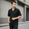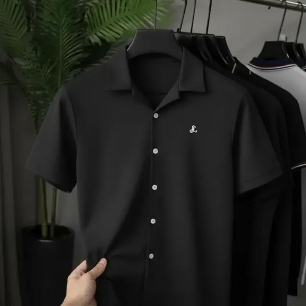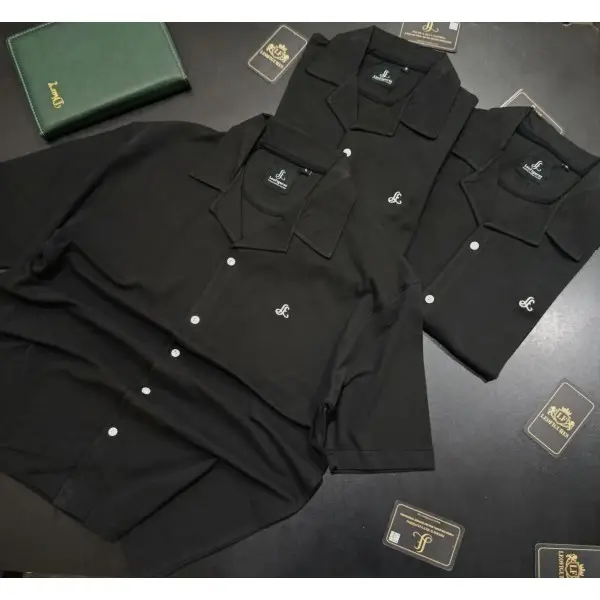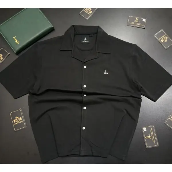 Redefine your casual style with the Leofigures black Button-Down. This isn't your average shirt; it combines the breathability of a polo with the classic silhouette of a short-sleeve button-down. Designed with a distinct textured knit, it offers a refined look that transitions effortlessly from a business-casual meeting to a sunset dinner.